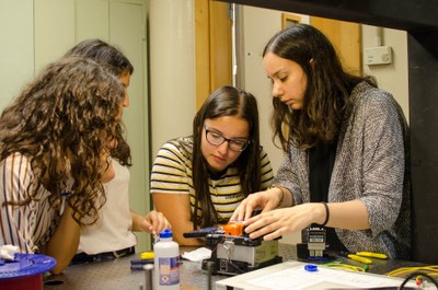 Seguidamente, fomos a um laboratório de trabalho do Centro de Fotónica Aplicada, onde conhecemos uma investigadora que nos apresentou uma impressora 3D e nos mostrou como criar uma peça para um circuito que íamos analisar de tarde.